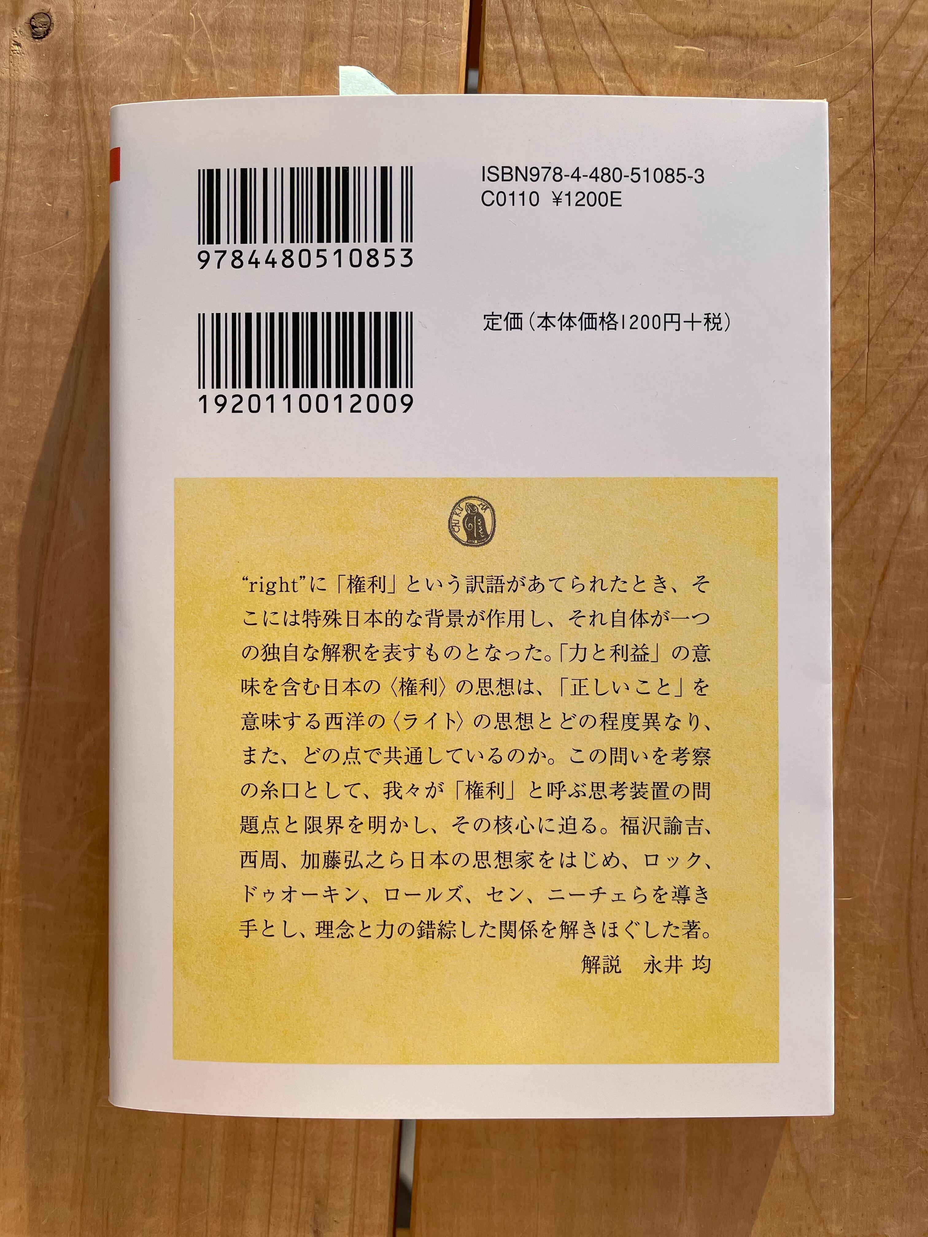 “right”に「権利」という訳語があてられたとき、そこには特殊日本的な背景が作用し、それ自体が一つの独自な解釈を表すものとなった。「力と利益」の意味を含む日本の〈権利〉の思想は、「正しいこと」を意味する西洋の〈ライト〉の思想とどの程度異なり、また、どの点で共通しているのか。この問いを考察の糸口として、我々が「権利」と呼ぶ思考装置の問題点と限界を明かし、その核心に迫る。福沢諭吉、西周、加藤弘之ら日本の思想家をはじめ、ロック、ドゥオーキン、ロールズ、セン、ニーチェらを導き手とし、理念と力の錯綜した関係を解きほぐした著。