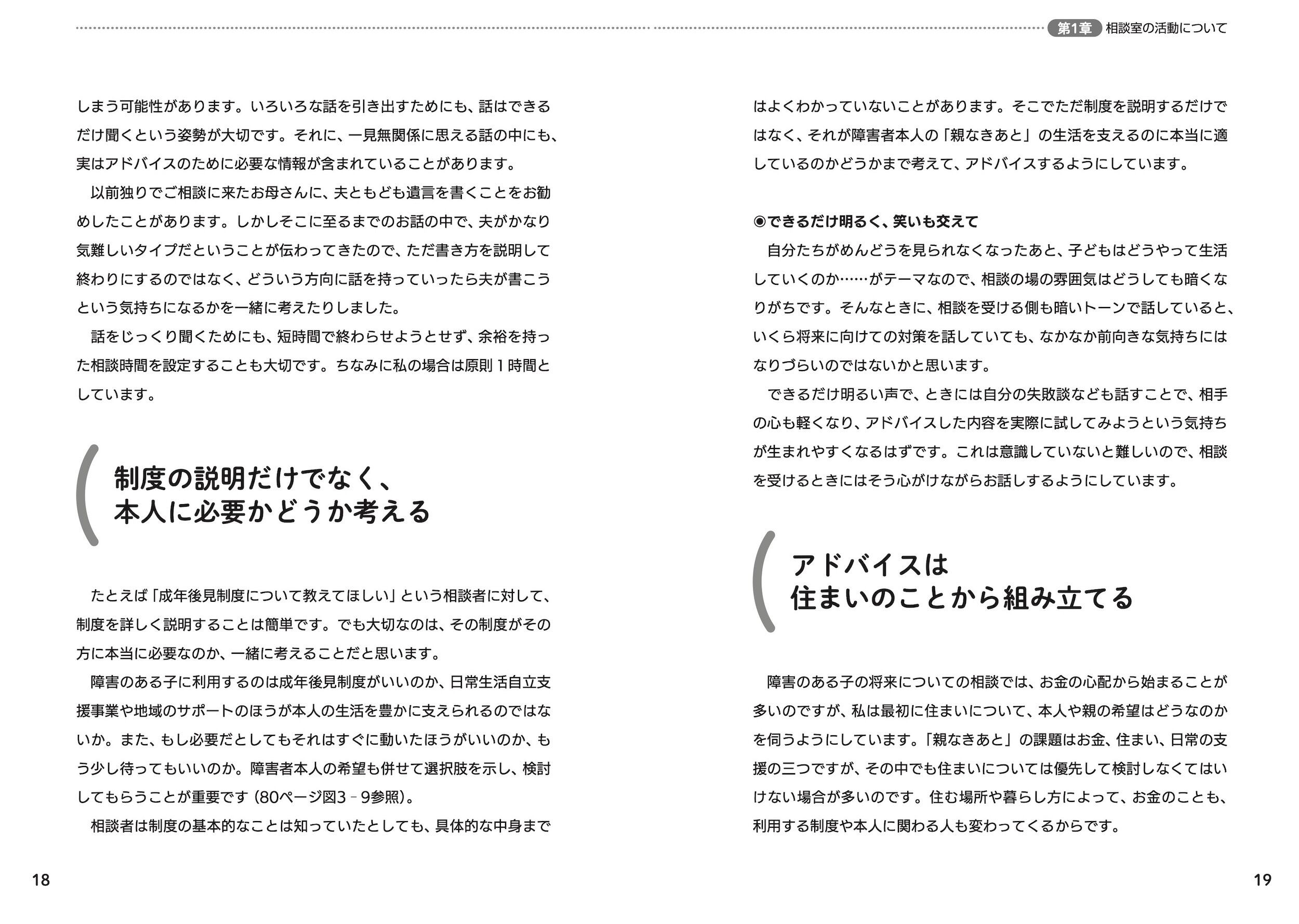障害者本人と家族が「親なきあと」の生活を組み立てるためには、福祉とお金の両方の準備が必要です。本書では、福祉施設や行政機関、特別支援学校などで働く支援者がご家族から「親なきあと」の相談を受けた場合の、利用できる制度、アドバイスのポイントなどについて、具体的な事例をもとにまとめました。